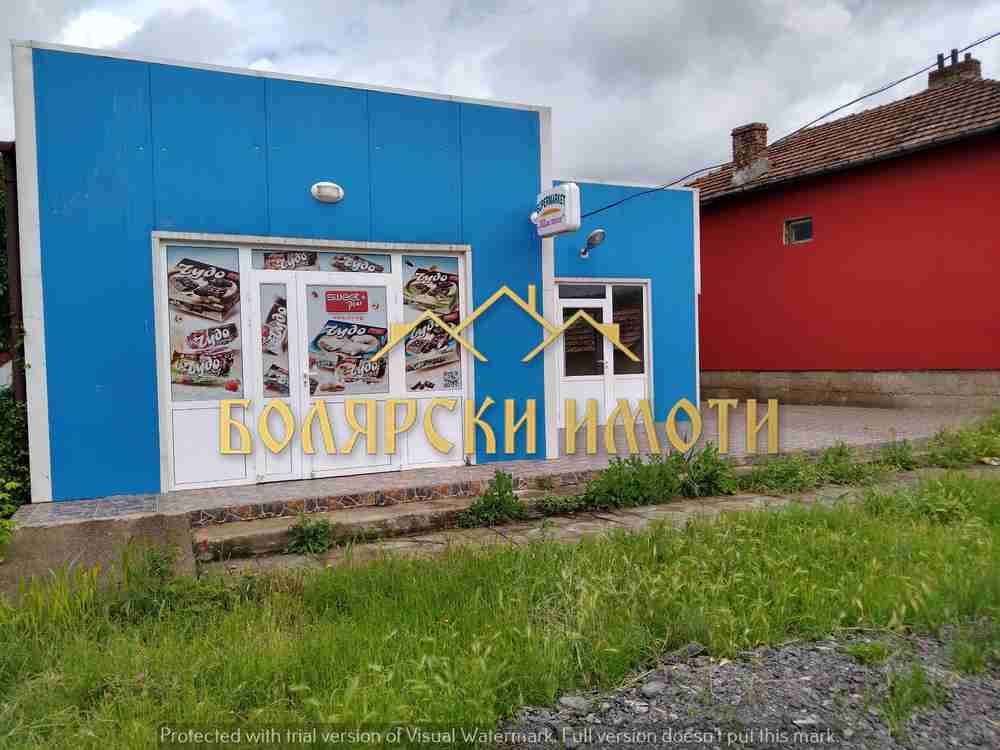 Имотът се намира в центъра, със статут на магазин, кафе-аператив и жилищна сграда. Изграден е през 2016 година с качествени термопанели, изолация и дограма. Върху 140 кв.м. застроена площ са разпределени, както следва - два входа, две търговски зали, два склада и два санитарни възела, за удобство на всяка дейност. Притежава всички разрешителни за извършване на търговска дейност. Имотът има много добра видимост и лице към главната улица. Продава се във вида, показан на снимките. Допълнително притежава 976 кв.м. земя, с правилна, правоъгълна форма, в която бихте могли да осъществите редица инвестиционни намерения или да построите свой дом.